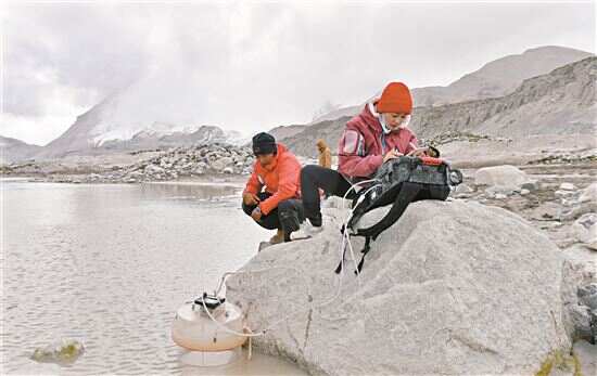 ■我国科考人员首次对卓奥友峰区域冰前湖进行监测。新华社发