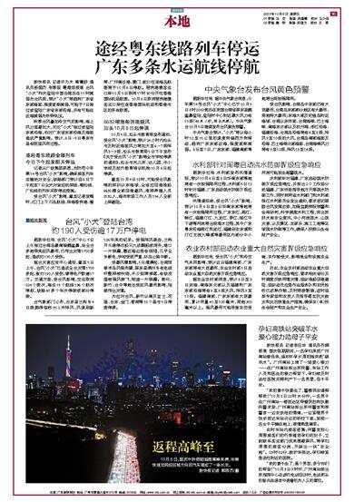 新快报讯 记者许力夫 高镛舒 通讯员杨国杰 张智超 粤海综报道 台风“小犬”昨天登陆中国台湾后在11时减弱为台风级,预计“小犬”将趋向广东省东部海面,强度逐渐减弱,可能于7日掠过或登陆广东省东部沿海,并有可能在近海减弱为热带低压。