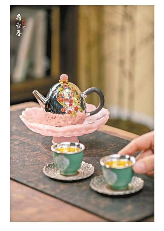 ▲传承人张胜制作的银器,采用了艳丽的色彩。