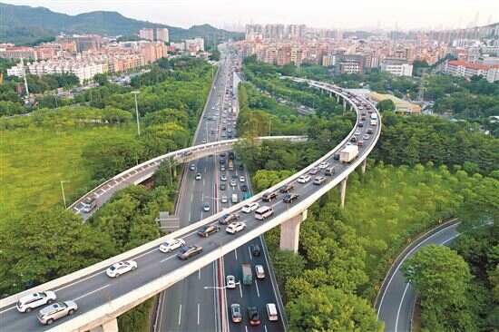 ■广东自10月2日起返程车流量逐渐升高,6日全省高速公路车流量超过840万车次,这是华南快速春岗立交路段,回程车流量大,行驶缓慢。新快报记者 郭思杰/摄