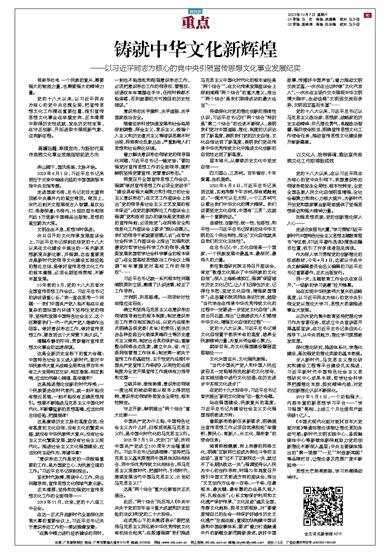 次日召开的文化传承发展座谈会上,习近平总书记深刻总结党的十八大以来在文化建设中提出的一系列新思想新观点新论断,并强调,这些重要观点是新时代党领导文化建设实践经验的理论总结,是做好宣传思想文化工作的根本遵循,必须长期坚持贯彻、不断丰富发展。