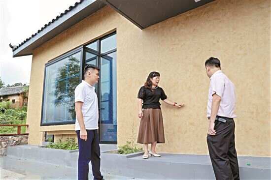 ■房春红(左一)和驻三排镇工作队调研千年瑶寨民宿房间。