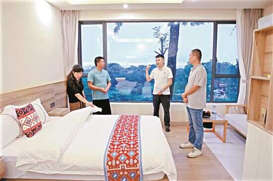 房春红跟新快报记者介绍到,民族传承、生态资源是三排镇的两大突出优势,也是当地推进产业布局的重要切入点。新快报记者了解到,依托当地独特的瑶排资源和瑶族风情,民宿产业越来越成为三排当地百姓增收致富的重要“门路”,对此,三排镇也正因地制宜引导三排民宿产业提质升级。