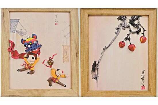 ■袁灵芝创作的具有浓郁岭南特色的花都面塑作品《少年醒狮》《岭南荔枝》。