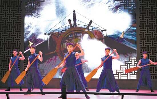 ■“丝路花语——海上丝绸之路文化之旅”活动启动仪式现场,舞蹈《乘风破浪》重现了海上丝绸之路远航的艰辛与震撼。新快报记者 夏世焱/摄