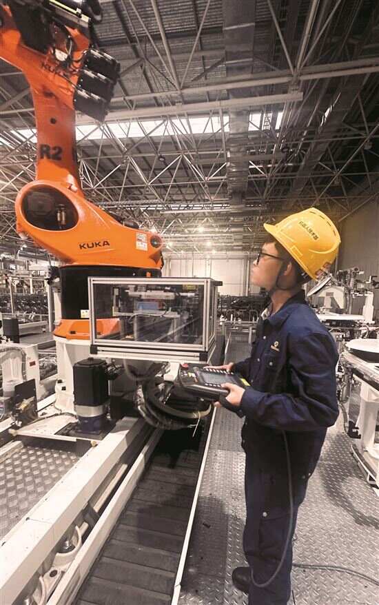 ■朱伟龙在操作机器人示教器。