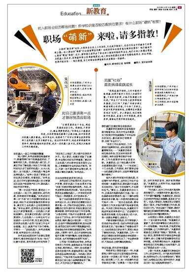 火热的“就业季”过后,大批毕业生走上工作岗位,正式成为职场人,在各行各业中贡献自己的青春力量。初入职场的“萌新”们会面临哪些问题?在校所学知识是否能匹配岗位要求?他们都有什么职场“避坑”秘笈?近日,新快报记者采访了多名初入职场的职校毕业生,他们中有人如愿以偿成为机器人技术员,因热爱和努力而离梦想更近;有人则在和机器打交道中克服性格弱点,学会沟通,变得开朗自信……他们希望,自己的职场故事能给后来者提供一些参考。