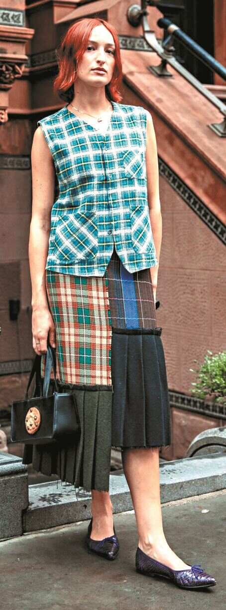 裙身一片式、褶子在两侧,更显利落;褶子一半在裙身的错位式设计更“街头风”。
