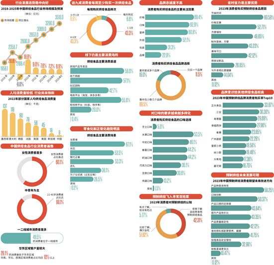 烘焙食品行业是近几年食品领域比较火热的赛道之一,随着居民饮食结构的变化,人均消费水平的上升,蛋糕、面包等烘焙糕点越发成为消费者饮食的重要组成部分。据艾媒咨询今年发布的《2023年中国烘焙食品行业现状及趋势研究报告》显示,2022年中国烘焙食品行业市场规模达2853亿元,随着人均消费水平的增长及餐饮消费结构调整,市场有望进一步扩容,预计2025年市场规模将达3518亿元。