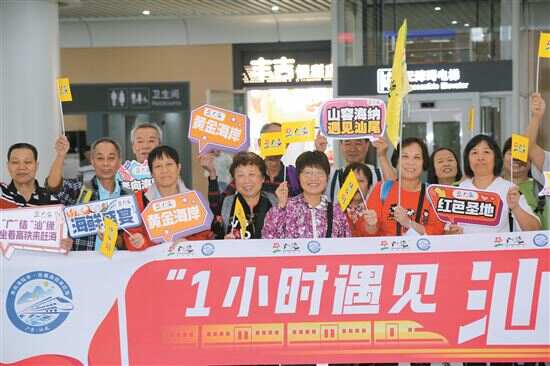 ■10月17日,游客集结,乘坐复兴号高铁列车前往汕尾。