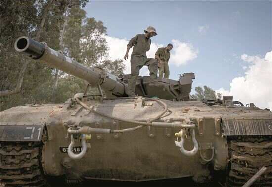 ■10月16日在以色列黎巴嫩边境以色列一侧营地拍摄的以军战车和士兵。 新华社发