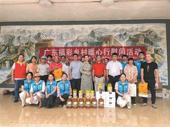 在云浮市思劳镇,慰问组来到鸡村村88岁的李大爷家中,与老人亲切交谈,关心询问生活情况和身体状况。在始兴县顿岗镇,由驻村社工、村委干部、志愿者组成的慰问团队,入户走访了11个行政村和1个社区,把米面油等慰问物资送到困境儿童家庭中。