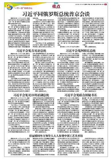 据新华社电 10月18日上午,国家主席习近平夫人彭丽媛邀请出席第三届“一带一路”国际合作高峰论坛的外方领导人夫人参观中国工艺美术馆(中国非物质文化遗产馆)。