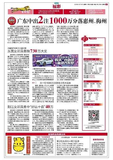 新快报讯 记者陆妍思 通讯员粤福彩报道 广东频传中奖喜讯!10月17日晚,中国福利彩票双色球游戏进行第23119期开奖,当期全国中出4注1000万元头奖,广东中出2注占全国半壁江山,分落惠州、梅州。