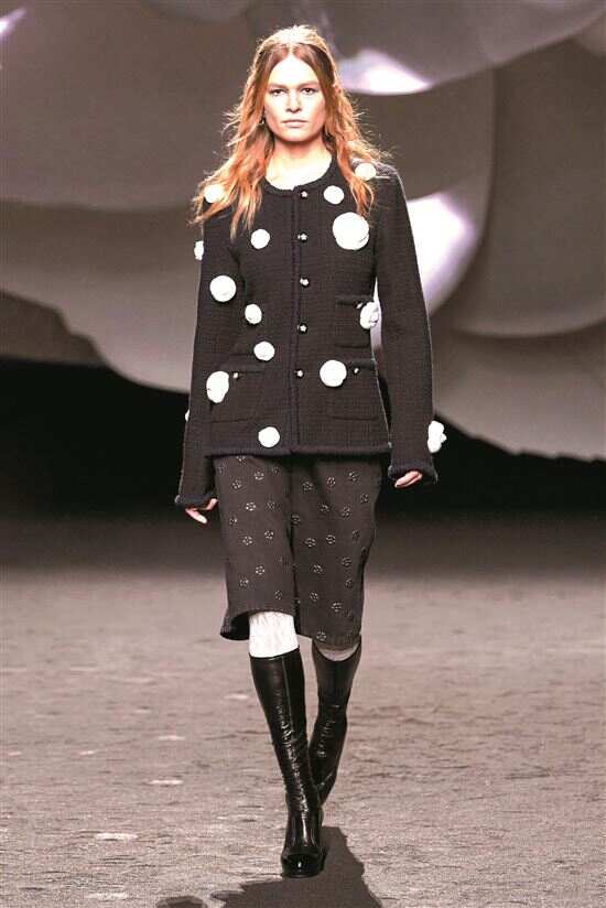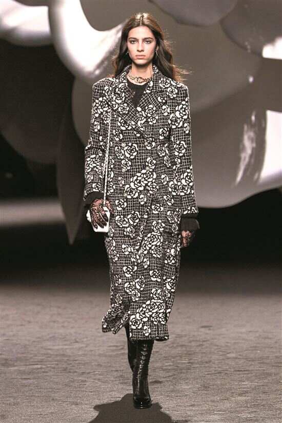 ■Chanel山茶花主题结合修身精致剪裁与秋冬感面料,散发成熟魅力(Chanel 2023秋冬系列)。