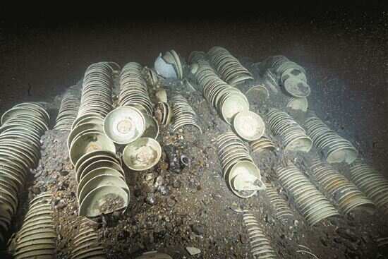 ■漳州圣杯屿元代沉船遗址船舱内码放的瓷器。