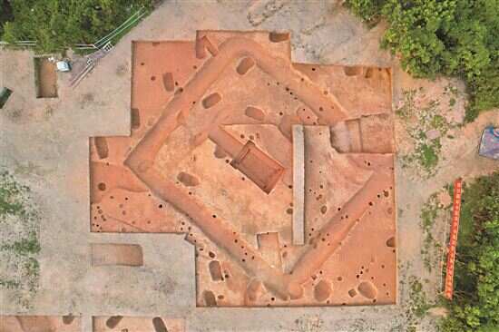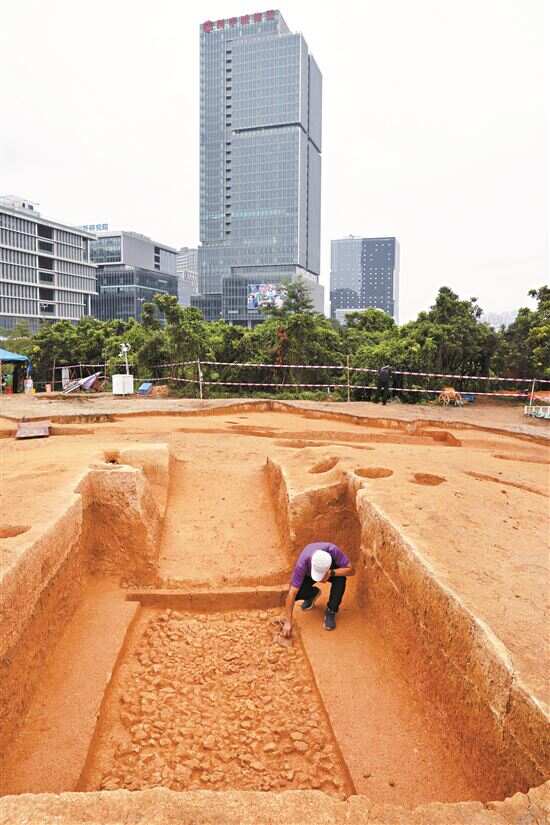 “环沟在岭南地区是第一次见。”广州市文物考古研究院馆员、镬盖顶岭遗址考古发掘项目负责人王慧介绍,这种环沟最早可以溯源到殷墟王陵区,先人用围沟来区分陵区。