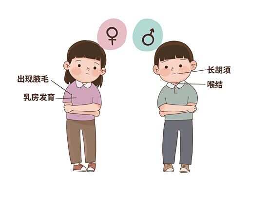 具体性早熟表现为,男性睾丸增大、阴茎增长增粗、体毛增多,声音低沉、长胡须、遗精等;女性乳房发育,阴毛增长,外生殖器改变、腋毛生长、10岁以前月经来潮等。