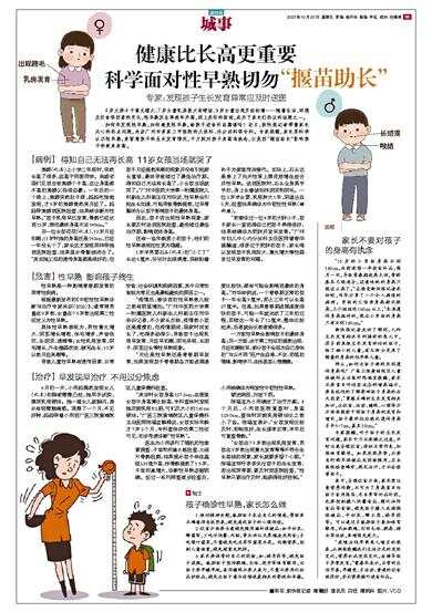 如何早发现性早熟,如何避免性早熟,给孩子进食补品靠谱吗?近日,新快报记者带着家长关心的热点问题,走访广州市多家三甲医院的儿保科、内分泌科等专科。专家提醒,家长要科学认识性早熟,多留意孩子的生长发育情况,千万别对孩子身高有执念,以免因“揠苗助长”影响孩子的终身身高。