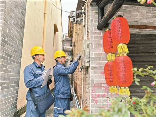 在优质电力服务的助推下,南社古村保留了历史的记忆、守住了文化的根脉。如今行走在村内古巷,已望不见“蛛网式”的交错电线横亘半空,电线杆塔架设在村外树林,一户一表移至村巷深处,融入到街景当中。
