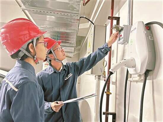 供电人员检查新建小区预装充电桩的安装情况。罗俊娴/摄