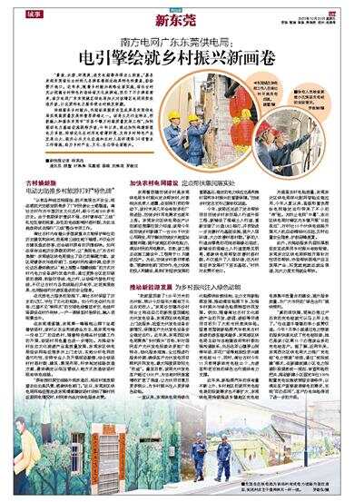 持续服务乡村振兴,巩固拓展脱贫攻坚成果是东莞供电局实现高质量发展的重要举措之一。该局立足行业特点,积极融入和服务东莞市“百县千镇万村高质量发展工程”,加快推动电力基础设施提档升级,今年以来,通过加快构建新型电力系统、持续优化农村用电营商环境、支持乡村特色产业发展壮大、提升公共文化设施和农村人居环境等34项重点工作措施,助力乡村产业、文化、生态等全面振兴。