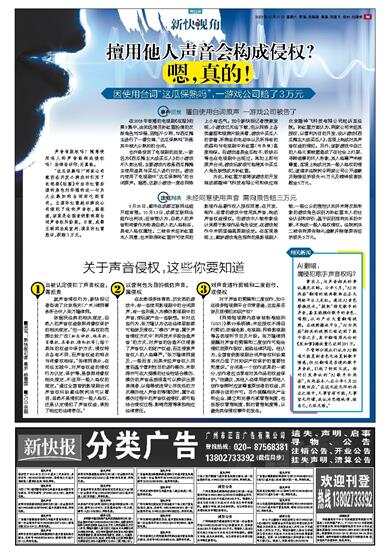 未经同意使用声音 需向原告赔三万元