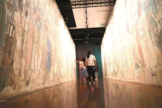 ◀3D打印技术,向观众再现了永乐宫壁画的恢弘气概和细节之美。 新快报记者 夏世焱/摄