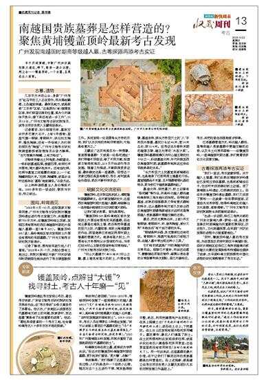 “也进一步说明,珠江三角洲北部的广州东北黄埔九佛-萝岗一线,是史前至秦汉时期南越先民重要的聚居区,历史悠久,文化底蕴深厚,在早期广州历史发展的进程中占据重要地位。”