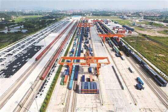 ■今年9月20日,搭载50英尺集装箱的铁路多式联运快车分别从广州国际港站等始发。(资料图) 新快报记者 毕志毅/摄
