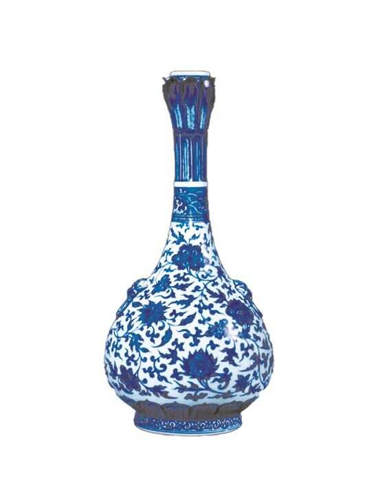 清雍正 青花缠枝莲铺首耳长颈莲口瓶