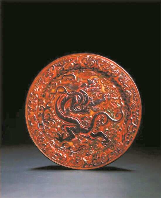 宋 剔彩灵芝云龙纹折沿盘