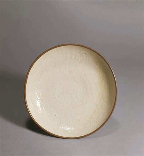 据《宋会要辑稿》〈职官一九之一〉记载,宋代殿中省下置六尚局,分掌皇帝饮食、医药、酒醴、衣服、次舍、舆辇等事:“凡总六局,日尚食,掌膳羞之事……”入金以后,承袭北宋制度,宫中续置尚食局、尚药局等机构,归宣徽院掌管。此盘曾由收藏大家胡惠春先生庋藏,乃难得一见而又传承有序的定窑宫廷佳器。