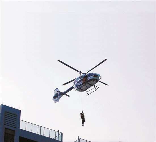■10月30日,广州市突发事件现场指挥部综合应急演练举行,演练设置无人机应急救援、直升机空中救援、地下车库排水等七个科目,共计350多人、120多套(台)装备参加了演练。新快报记者 郭思杰/摄