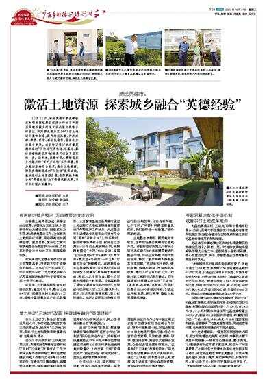 着力推动“三块地”改革 探寻城乡融合“英德经验”