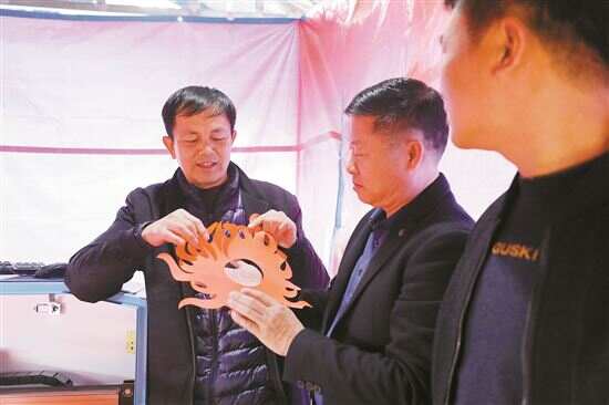■广州驻连山工作组和太保镇工作队在查看激光切割机制造的拼贴部件。