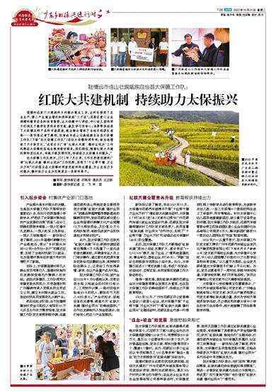 驻太保镇工作队表示,2021年7月以来,工作队积极创建的广清“红联大共建 镇村企同兴”工作机制,实现了“千企帮千镇 万企兴万村”行动倡议在太保镇村两级党组织的全覆盖,为企业助力乡村振兴、镇村助力企业兴旺探索出一条新的路子。