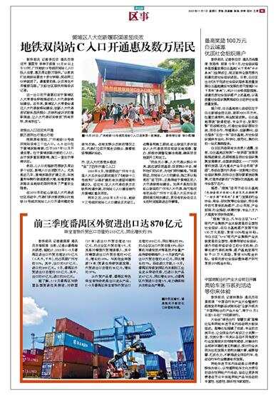 新快报讯 记者李应华 通讯员徐洁芹 黄蓉芳 李幸子报道 10月30日上午10时,广州地铁13号线双岗站C入口投入运营,惠及周边数万居民。“以前我们去地铁站要走十多分钟路,现在两三分钟就到了。最重要的是,以后再也不用横穿马路。”文船社区居民郑强告诉记者。