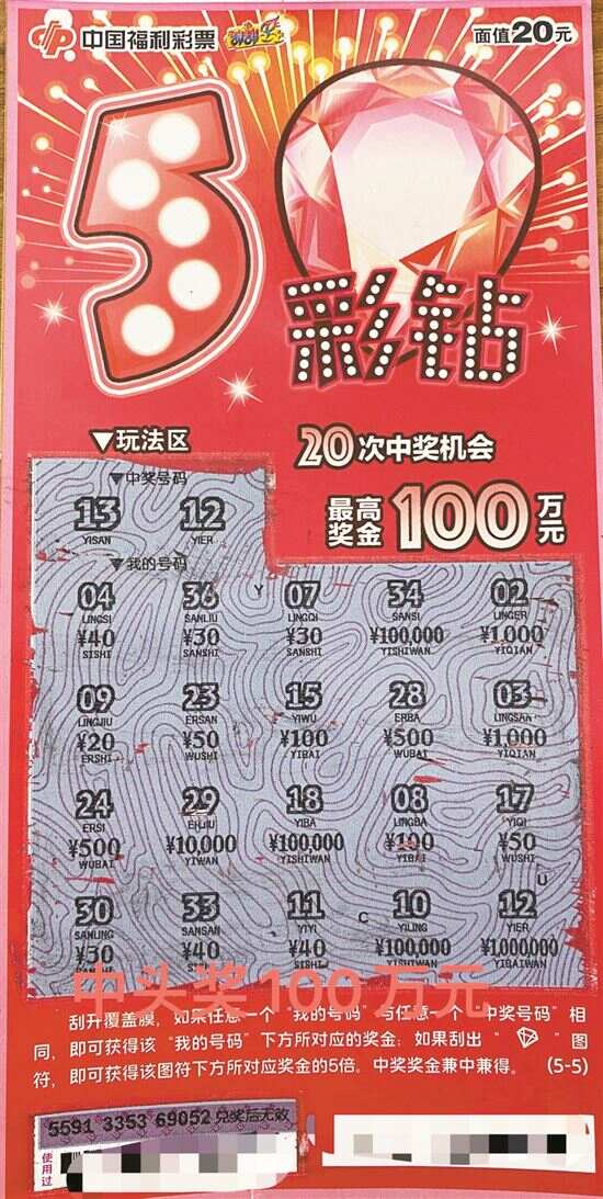 新快报讯 记者陆妍思 通讯员郑惠文报道 近段时间,阳江彩市好运连连,10月先后有彩民中出刮刮乐“5彩钻”100万元和刮刮乐“连年有余”25万元两个头奖,中奖票分别在阳西县上洋镇44140403销售点和阳江市新达城商场44140165销售点售出。