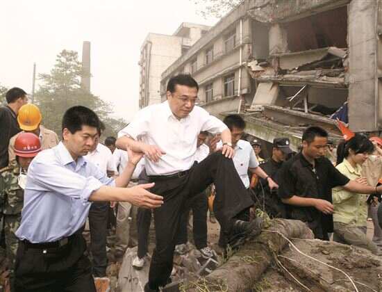 ■2008年5月19日,李克强同志在四川地震灾区察看灾情。 新华社发