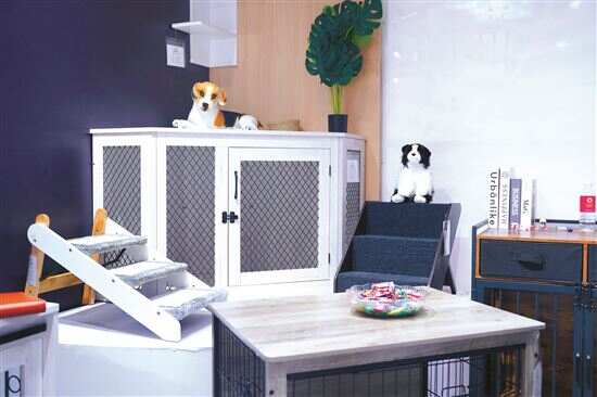 ■广交会三期的一个展位上展出许多适用于汪星人、喵星人的“新新家具”。