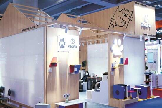 这个展位上展出着属于猫猫、狗狗的温馨的家。