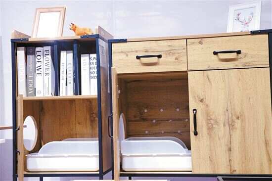 “你们卖的是家具,怎么会在宠物展区?”同俄罗斯采购商莉娜一样困惑的还有新快报记者。只见宠物展区里有一个墙边柜,来自德艺文创的詹小姐轻轻打开了柜门,原来柜子里藏着一个猫砂盆,柜边开了一个小圆洞。平时,猫咪可以从一侧的圆洞钻进这里如厕,而它们的小脚每次都要携带的几颗猫砂则全部留在柜内,不会弄脏其他地方。