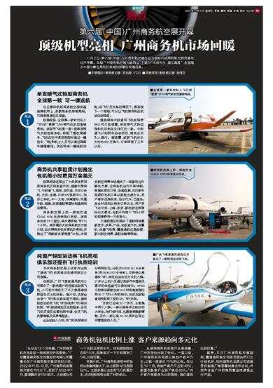 11月2日,第六届(中国)广州商务航空展在白云国际机场商务航空服务基地拉开序幕。本届广州商务航空展为期两日,主题为“向新而生,越见高度”,全面展示中国元素在商务机领域创新融合发展成果。
