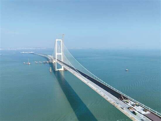 ■深中通道伶仃洋大桥钢桥面单日铺装面积超过2.5万平方米。