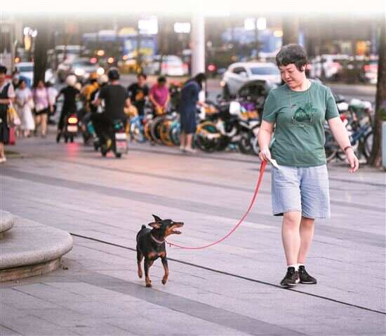■新快报记者走访发现,大多数养犬人在遛狗时均会牵绳。新快报记者 邓迪/摄