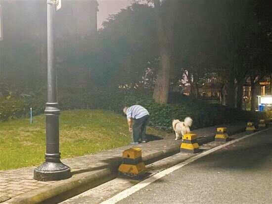 10月30日晚,新快报记者来到广州番禺区雅居乐花园小区,在该小区停留半个小时,见到了4位遛狗的居民。这4位居民遛狗时均使用了牵引绳,但并未给狗佩戴犬牌。黄小姐养了一条哈士奇,当晚正在楼下遛狗。据她所说,自己日常出门都会给狗戴牵引绳,“有时候也怕别人对大狗恐惧,我出门都非常谨慎。”当被问及遛狗是否会戴嘴套时,黄小姐表示,家里有嘴套,去稍远人多的地方都会戴上,但如果只在附近遛狗就不会穿戴到位,“我觉得嘴套或多或少会影响狗狗的嗅闻和散热,晚上楼下遛狗希望它放松一点”。