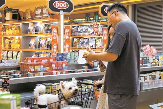 ■消费者与爱宠一起挑选宠物用品。 新华社发