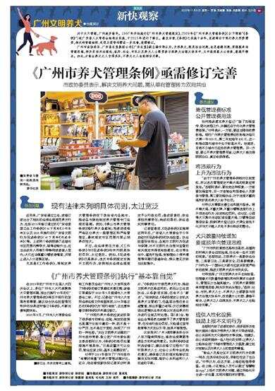 在2019年的广州市十五届人大四次会议上,多位广州市人大代表聚焦犬只管理问题,指出已施行10年的《广州市养犬管理条例》滞后于现行的发展形势需要,建议结合执法检查情况和评估结果适时修订《条例》,不断完善制度供给。