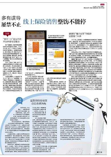 除了直播间,互联网保险营销乱象也有再度抬头现象。今年4月以来,关于“1元领600万保险”的宣传不断冒出。有调查报道指出,部分保险公司、保险专业中介机构的互联网保险营销宣传广告,存在过度营销、虚假宣传、诱导消费等诸多乱象,其中“首月1元”“免费赠险”等方式对消费者的误导尤其明显。
